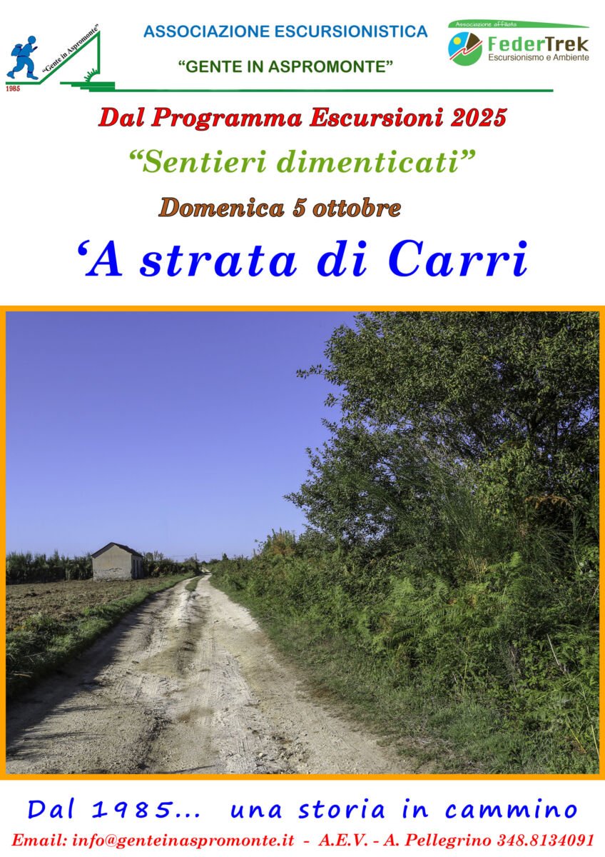 Primo Raduno: Ore 9:30 presso il parcheggio all’uscita autostradale A3 di Bagnara, poi si prosegue in direzione Sant’Eufemia - Solano - Secondo Raduno: Ore 10:15 alla Fontana Guglielmazzo